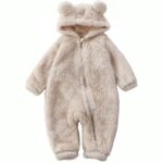 [Augelute] 着ぐるみ アウター くまさん ふわもこ ボア カバーオール 男の子 女の子 ベビー 60 ベージュ |
