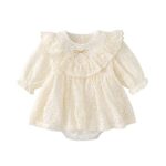 [Baby koi] ベビー服子供服女の子洋服春秋長袖ワンピーススカーガールズカジュアル普段着ドレス結婚式お宮参り発表会七五三バースデー贈り物ギフト無地蝶結びベージュ12M |