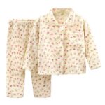 [Baby koi] ベビー服 パジャマ厚手腹巻上下セット前開き春秋冬長袖女の子男の子子供服総柄プレゼント贈り物ベージュ100㎝ |