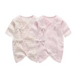 [Baby koi] ベビー服新生児赤ちゃんコンビ肌着通年素材春秋夏長袖カバーオール2枚組女の子ドット柄無地ピンク70㎝ |