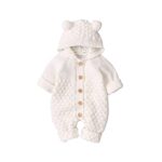[B-TOPAZ] ベビー服 ロンパース カバーオール 男の子 女の子 ベビー 足つき 長袖 ニット おくるみ 前開き ロンパース 赤ちゃん 新生児 防寒 フード付き アウター ベビー用品 可愛い 出産祝い (80, ホワイト) |