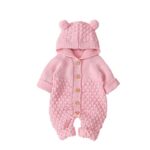 [B-TOPAZ] ベビー服 ロンパース カバーオール 男の子 女の子 ベビー 足つき 長袖 ニット おくるみ 前開き ロンパース 赤ちゃん 新生児 防寒 フード付き アウター ベビー用品 可愛い 出産祝い (70, ピンク) |