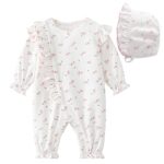 [Baby Nest] ベビー服 女の子 ロンパース カバーオール 赤ちゃん服 新生児服 帽子付き 綿100% パジャマ ルームウェア 出産お祝い 花柄 かわいい 66 3-6ヶ月 |