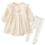 [Baby koi] ベビー服子供服女の子洋服春秋長袖ワンピーススカーガールズカジュアル普段着ドレス結婚式お宮参り発表会七五三バースデー贈り物ギフト無地蝶結びベージュ12M |