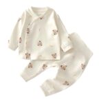 [Baby Nest] ベビー服 男の子 女の子 パジャマ 寝間着 トップス パンツ 新生児服 子供服 出産お祝い かわいい ベージュ 80 9-12ヶ月 |