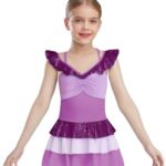 [Choomomo] 子供用 女の子向け きらきらした マーメイド柄の フィギュアスケート用ドレス 袖なし 段違いの リボン付き バレエダンス用チュチュスカート ダンスウェア 紫 16 |