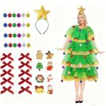 [EMGTTXDY] クリスマス衣装クリスマスツリードレスコスプレエルフ面白いクリスマスツリーグリーンクリスマスイベントパーティー衣装忘年会変装ステージ用サンタ衣装セット(M) |