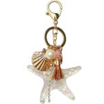 ANコミネ(KOMINE) バイク用 かわいいクリスタル シーフィッシュ 海の星 キーホルダー シェル パール タッセル キーリング カーバッグ 財布 チャーム レディース ガールズ, 画像参照, as picture |