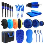 カーディテーリングキット – インテリア エクステリア用のフル 22 個のクリーニング カー ディテーリング キット,ワイヤーブラシとディテールブラシを備えた洗車キット、ホイール用カークリーニング用品、タイヤダッシュボード、エアベント/r |