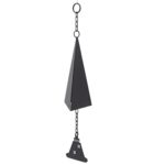 三角形の風鈴ペンダント、吊り下げリング付きの中庭の鐘の装飾、アイアンブラックスプレーペイント、庭のパティオの壁の装飾用のユニークな三角形のデザイン、耐候性と防錆性 |