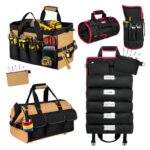 広口工具バッグ 「大容量26ポケット+1取り外しポケット」、ツールバッグ ロール 「コンパクト13ポケット・可視ラベル窓口」 【ブラック+レッド】 車載/DIY/電気工事/大工/自動車整備用 |