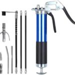 Eiuuiojグリースガン – 省力化レバー式グリースディスペンサー、シングルレバー高圧手動グリースガン、手動式グリースガン レバータイプ カートリッジ兼用 ホース付き + ノズル付き 高圧注油工具 車両整備・農業機械・建設機械・産業機械・自動車用 潤滑油注入専用 (ブルー スタンダードセット) |