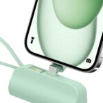 JVGoalモバイルバッテリー 軽量コンパクト 5000mAh 急速充電 スタンド機能付き iPhone16/15 & Android対応 内蔵USBケーブル PSE認証済み (グリーン) |