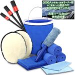 LuxDee 洗車用品 17点 洗車セット 使用説明書付 [ 拭き上げ用 マイクロファイバークロス 4枚 洗車ブラシ 豚毛 5本 ムートングローブ 2個 ワックスクロス 2枚 窓ガラス用クロス 1枚 バケツ ホイールブラシ 1本 ] (バケツ付き, グレー) |