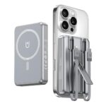 Magsafe対応モバイルバッテリー 16800mAh 大容量【ケーブル内蔵・4台同時充電】軽量 PD22.5W+15Wワイヤレス急速充電 スタンド付き LED残量表示 Type-C入出力兼用 マグネット式 マグセーフ充電器 iPhone16/15/14/13/12シリーズ対応 コンパクト 小型 機内持ち込み可 旅行/出張/防災 PSE認証済み(シルバー)