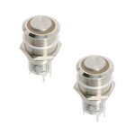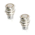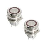 Ohamtes 瞬間的な押しボタンスイッチ 12V 24V 防水ステンレス鋼金属 3/4″ 取り付け穴 赤 LED SPST スイッチ、電気機器用, 2個、高い |