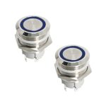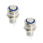 Ohamtes 瞬間的な押しボタンスイッチ 3V 6V 防水ステンレス鋼金属 3/4″ 取り付け穴 青 LED SPST スイッチ、電気機器用, 2個、平らな |