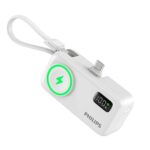 Philips(フィリップス) モバイルバッテリー 小型 Apple Watch対応 5000mAh アップルウォッチ 充電 2.5W 折畳み式 usb cコネクター type-c ケーブル内蔵 軽量 PD 22.5W急速充電 パススルー機能/LEDディスプレイ搭載 PSE認証済 iOS & Android デバイス対応 ホワイト DLP2557CW |