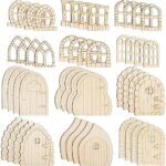 48 個妖精のドア木製ガーデンドアミニ窓妖精ハウス DIY キット未完成ミニチュアドア未塗装妖精家の装飾紙切削工具 |