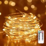 電池式 LEDイルミネーション 10m 100球 リモコン操作【8 点灯パターン・断線防止・長寿命】IP65 防水 屋外対応 LED 輝度改良済 自由に曲げられる絶縁銅線 ワイヤーライト カーテン飾り 庭木ライト クリスマス 省エネ 写真壁 キャンプ装飾 誕生日 結婚式 パーティー装飾 女性 女友達 ご年配 へのプレゼント 簡単設置 (ホワイト)