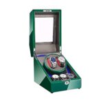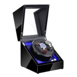青いLEDライトブラックピアノペイントエクステリアアダプターとバッテリー駆動の自動時計用のダブルウォッチワインダー