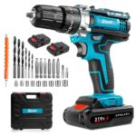 電動ドライバー 【新登場強化版 初心者】21v 電動ドリル インパクトドライバー 1500mAh バッテリー2個付き 25+1段階トルク調節 LEDライト 無断変速 充電式ドリルドライバー 最大42N.m LEDライト 二段階スピード調節 正逆転切替 電動工具セット 延長アダプター 充電式ドライバー ネジ締め穴あけ DIY家具組み立て收纳ケース穴あけ 締付工具 木材・金属掘削 日本語取扱説明書