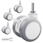 静音キャスター ネジ式キャスター M8 4個 ストッパー付き 360度回転 総耐荷重80KG 4個組(ストッパーなし2個+ストッパー付2個) 付け替え 耐久性 スパナ付き (白色, M8対応)