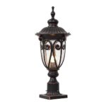 防水屋外ピラーライトヨーロッパクラシックスクエアガーデンガラスランタン防錆アルミダイキャストコラムライト E27 中国パティオポーチゲートボラードライトエクステリア防雨