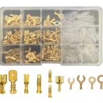 配線用圧着端子セット, 280個入り, ギボシ端子・平型端子・丸型端子・クワ型端子, 絶縁スリーブ付き, 真鍮製, 金色