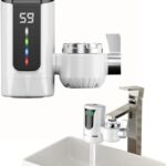 電気給湯器 キッン用瞬間加熱蛇口ヒーター、温水と冷水の両用、タンクレス、高速シャワー、LEDディスプレイ付き 小型湯沸器(Silver)