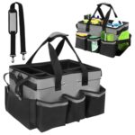 (シャシャン)XIAXIN 【大容量・多機能】掃除用具収納バッグ 仕切り付き 工具バッグ 収納ケース 取り外し可能な仕切り 便利な持ち手付き キャンプ 掃除道具 洗車用 小物整理に最適 ZA-428SB (グレーXブラック)