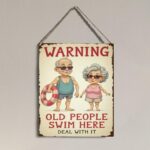 面白いスイミングプール警告ウォールサイン プールテラス ユーモラスなアウトドアサイン レトロなデザインと遊び心のあるキャラクター付き 夏のアートワーク 装飾 Old People Swim Here Sign