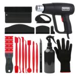 2000wヒートガン、車用ビニールラップキット、ソーラーフィルム取り付けツール、ウィンドウティントバルク、高速加熱ホットエアガン、スクレーパー、スプレーボトル、手袋、カッター、ナイフ、スクイージー、オートトリマースティック、ブラック&レッド、21 in 1