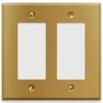 2ギャング真鍮コンセントカバー、サテン真鍮装飾コンセントカバー、標準サイズ4.5インチ x 4.5インチ、ロッカースイッチカバーとGFCIコンセントプレート、ゴールドライトスイッチカバー、真鍮スイッチプレートカバー、米国製。
