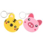 2個 格納式巻尺キーホルダー 便利な自動巻き取り ミニ携帯用 トラ ブタデザイン おしゃれな動物モチーフポケットルーラー