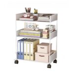 2段 3段 デスク収納 キャスター付きワゴン デスク下 パソコン机下収納ラック オフィス用 サイドデスク -ファイルラック-オフィスデスク下ファイルラック-物置棚-ランドセル階層式ワゴン-おやつ収納ボックス-滑車収納棚 (ホワイト,3段:車輪付き(長い40cm))