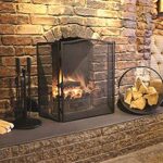 3 パネル ファイヤー スクリーン スパーク ガード アーチ型、暖炉とストーブ用のファイヤーガード、自立型 3 つ折りサラウンド スクリーン – ブラック