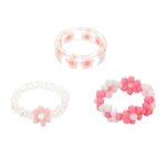 3 個のアクリルラブリング独立したリング美的夏の樹脂リングフルーツクリア樹脂リング色の指ヴィンテージリング女の子と女性色のプラスチックリングジュエリー ハートパールピアス (Pink, One Size)
