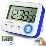 3in1多機能デジタルタイマー 大画面表示 12/24時間時計 アラーム&カウントダウン機能搭載 磁石&スタンド設置 無音光/音アラーム切替式 単四電池式 (ブルー)