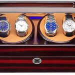 4つの自動時計ビルトインLEDライトウッドシェルピアノペイントエクステリアアダプターとバッテリー駆動のアクセサリー、B、B、