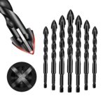4エッジクロスドリルビットセット7個、石材用ドリルビットセット、六角シャンクドリルビットセット、多機能クロス合金セラミックドリルビットセット、セラミックタイル、壁、セメント、木材用