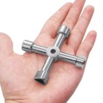 4ウェイ多機能キーレンチ 水栓スパナ 止水栓ハンドル 万能クロスレンチ 共用水栓カギ ポータブル金属スパナ 電気ボックス 水道メーターバルブ対応