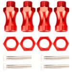 4個のRCホイール六角ドライバー延長アダプター、RCカートラック用メタル12mmターン17mm延長アダプター、ナットとネジ付きの耐久性のある交換アクセサリー、長持ちするアップグレードパーツf (赤)