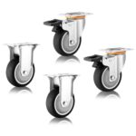 4個セット 産業用キャスター 3・4・5インチ 静音 TPR ゴム車輪 自在キャスター、360度回転 旋回キャスター ブレーキ付き 家具 トロリー プレートキャスター、単個耐荷重83kg 床を傷つけない 作業台 台車 取替えキャスター(固定+制動,125mm)