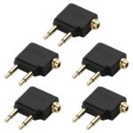 5 ピース 3.5mm プラグ アダプタ ジャック オーディオ ヘッドフォン コンバータ アダプタ ヘッドセット コネクタ ブラック & シルバー 航空会社の飛行機旅行用イヤホン