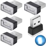 5ピースアイスブルーUSB雰囲気ライト、車 usb ライト、プラグイン5Vミニusbライト、ミニインテリアアンビエント照明キット、ラップトップ、USBソケット、ナイトライト、追加のUSBプラグ装飾に適しています