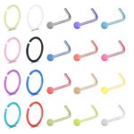 6ixGosh 20G ノーズイヤーリング フープ プラスチック アクリル カラフル バイオフレックス フレキシブル ノーズピアス リテーナーリング 軟骨 バイオプラスチック フープスタッド 鼻孔ピアス ジュエリー 仕事 手術 スポーツ 女性 男性, 9mm, アクリル, 宝石なし