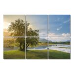6枚 防音シート 厚さ1cm 自己粘着 吸音材 壁 難燃 青い空と晴れた日に濃い緑の松林と山湖 防音材 室内装飾 寝室 家 オフィスの壁用吸音パネル 音を吸収・低減、騒音・反響音を消す 取り付け簡単 縦120cm×横180cm