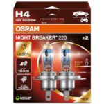 オスラム ナイトブレーカー 220 H4 220%明るい ハロゲン ヘッドライト ランプ 64193NB220-2HB 折りたたみボックス (ランプ2個)