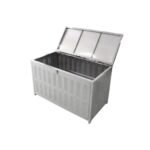 ゴミ箱 屋外収納庫 230L 大容量 ゴミステション 樹脂製 軽量 完全防水 ふた付き 液体受けトレイ付きゴミ荒らし防止 カラス除け 野良猫対策 通気性 頑丈 安定 簡単組立 外置き 庭園用 物置 (ブラック)
